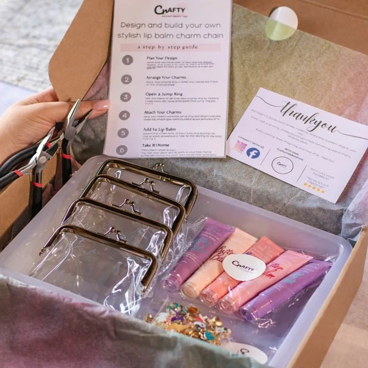 What’s included in your box: For each crafter- 1x Lip Butter Balm Tube (15ml) - ready to be turned into a fun and stylish keychain accessory.
